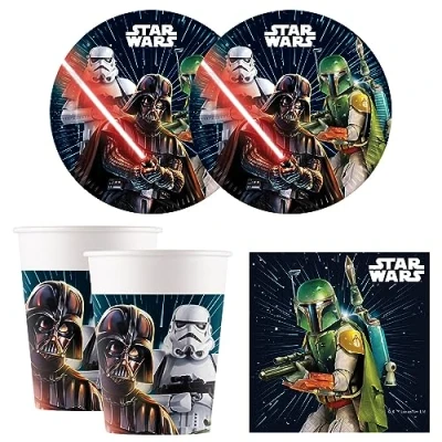 Procos Star Wars Galaxy party set: ideal for birthdays, garden parties or barbecues The set contains 8 plates (23 cm) and 8 cups with a capacity of approx. 200ml Includes 20 napkins (33 x 33 cm) with Star Wars motif Disposable tableware: worry-free celebration without the hassle of washing up The ideal addition to a galactic Star Wars party, Manufacturer: Procos
