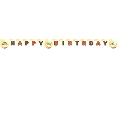 Are you looking for a garland for the next children's birthday? Then this letter garland from Procos is just the thing for you The Mandalorian garland is decorated with the lettering Happy Birthday and motifs of the Star Wars hero. It has a length of approx. 2 metres Let your creativity run wild and create an unforgettable party decoration This garland will delight Star Wars fans big and small Welcome your friends with a Happy Birthday banner from Procos Combine with other matching decorative items from Procos (not included) to complete the party decoration, Manufacturer: Procos