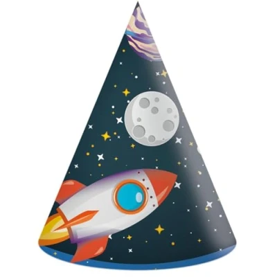 Procos Party Cone Hats Rocket Astronaut Space FSC Paper, 6 Pieces, Multicoloured, PR93738