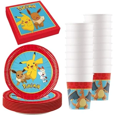 Procos Pokemon Birthday Decorations 52 Pieces Paper Plates, Cups and Napkins for Kids Party Supplies