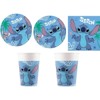 Procos Stitch Set 52 PCS 20PK 2PLY Paper Napkins 16 Plates 23 cm Cups 200 ml