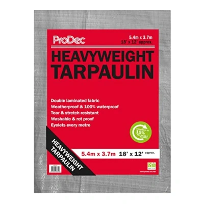 ProDec 18ft x 12ft / 5.4m 3.7m Heavyweight Waterproof Double Laminated Multi Purpose Tarpaulin Weatherproof, Reinforced Eyelets, Ideal for Construction, Covering Vehicles, Boats, As A Ground Sheet