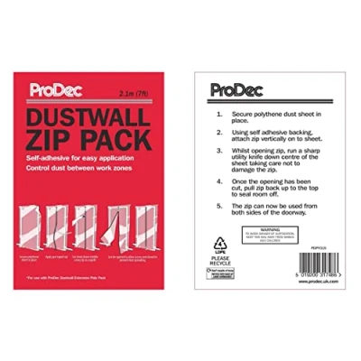 Quickly and easily create zipped doorways through temporary barriers Works with polythene dust sheet screens such as ProDec Dust Wall 2.1m (7' approx.) length can be cut to size as required Self-adhesive - best applied to the polythene sheet on the floor before it is secured in situ More Information Below in the 'From The Manufacturer' section - click on 'See More Product Details' or scroll down