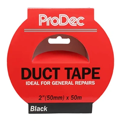 ProDec 2 inch x 50m Black duct tape, waterproof gaffer and adhesive cloth repair 2" 50mm wide