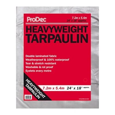 ProDec 24ft x 18ft / 7.2m 5.4m Heavyweight Waterproof Double Laminated Multi Purpose Tarpaulin Weatherproof, Reinforced Eyelets, Ideal for Construction, Covering Vehicles, Boats, As A Ground Sheet