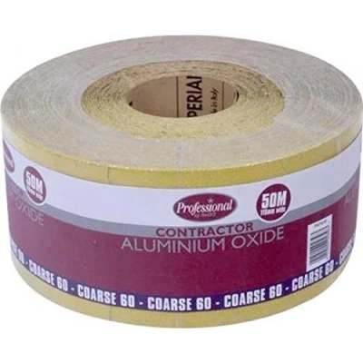 ProDec 50m Roll 60 Grit Coarse Grade Yellow Aluminium Oxide Abrasive Sanding Paper for Wood, Paint, Plaster, Filler, Metal and More, 115mm Wide Sandpaper Compatible with Machine Sanders