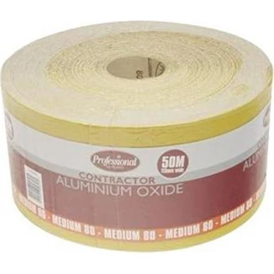 ProDec 50m Roll 80 Grit Medium Grade Yellow Aluminium Oxide Abrasive Sanding Paper for Wood, Paint, Plaster, Filler, Metal and More, 115mm Wide Sandpaper Compatible with Machine Sanders