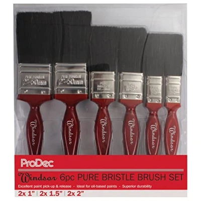 ProDec 6 piece Windsor Trade Professional Pure Bristle Paint Brush Set for Painting with Emulsion, Gloss and Satin Paints on Walls, Ceilings, Wood Metal, Contains 2x 1, 1.5, 2 inch Brushes