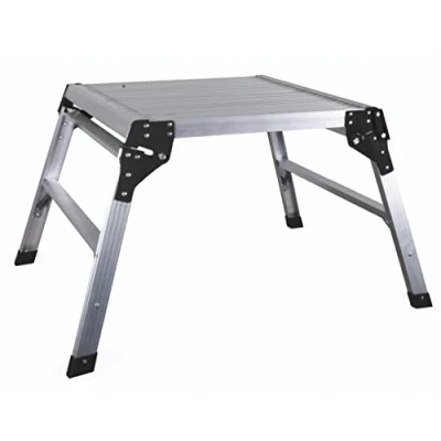 Lightweight, portable aluminium workstand with large 600 mm x 600 mm platform area 500 mm platform height ideal for a range of tasks including painting, papering, cleaning, etc. of walls, ceilings and windows Folding legs that are secured in place with a locking clip for safety, with non-slip feet Sturdy construction: up to 150kg load limit Folds quickly and easily to a compact size for easy transport and storage