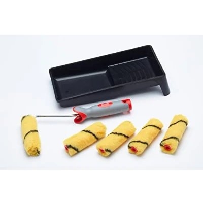 5 x durable, high quality mini woven synthetic rolls with excellent paint absorption and release for a smooth finish 12mm medium pile, ideal for emulsion paints (e.g. B. matte, silk, egg shell) on smooth and semi-smooth surfaces 100mm size, ideal for smaller areas, for painting behind radiators and pipes, as well as for touch-ups. Black mini tray made from 100% recycled plastic.See the 'From Manufacturer' section below. Click on "More product details" or scroll down. International products have separate terms, are sold from abroad and may differ from local products, including fit, age ratings, and language of product, labeling or instructions., Manufacturer: Rodo Ltd