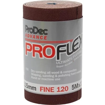 ProDec Advance 5m Roll 120 Grit Fine Grade ProFlex Ultra Flexible Crack Resistant Aluminium Oxide Abrasive Sanding Paper for Wood, Paint, Plaster, Filler, Metal and More, 115mm Wide