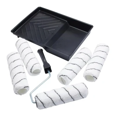 7 piece extra value trade quality roller kit ideal for interior walls and ceilings 5x microfibre rollers for superb paint loading and ultra-smooth, even release for a professional finish with minimal roller texture 12mm medium pile ideal for emulsion paints (eg. matt, silk, eggshell) on smooth and semi-smooth surfaces Rugged plastic handle cage roller frame with push fitting for extension poles Black tray made from 100% recycled plastic 9” (225mm) width x 1.75" (44mm) diameter rollers MORE INFORMATION BELOW in the 'From The Manufacturer' section - click on 'See More Product Details' or scroll down