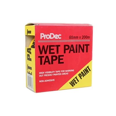 ProDec PWPT200 60mm x 200m (2.5" 650 ft) Wet Paint Warning Barrier Tape, Non Adhesive Yellow and Black Tape for Highlighting Freshly Painted Areas, Supplied in Dispenser Box