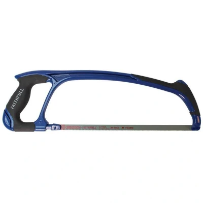 General description The Faithfull Professional Aluminium Hacksaw is a heavy-duty tool designed for cutting metal and other materials. It features a durable aluminium frame that offers a good balance of strength and lightweight handling. The hacksaw is equipped with a soft grip handle and a contoured front thumb support for increased comfort during use. Its integrated blade tensioner allows for easy adjustment, and the blade can be positioned at a secondary angle of 45° for flush cuts. Supplied with a 24 TPI bi-metal blade, it is suitable for precise and efficient cutting tasks. Technical specifications Blade Length: 300mm (12in) Blade teeth per inch: 24 TPI Material: Aluminium frame Blade type: Bi-metal Compatibility and accessories Compatible with standard 300mm (12 inch) hacksaw blades Additional blades can be used for different cutting requirements Installation Insert the blade into the frame, ensuring it is securely fitted at the tensioner points Adjust the blade tension using the
