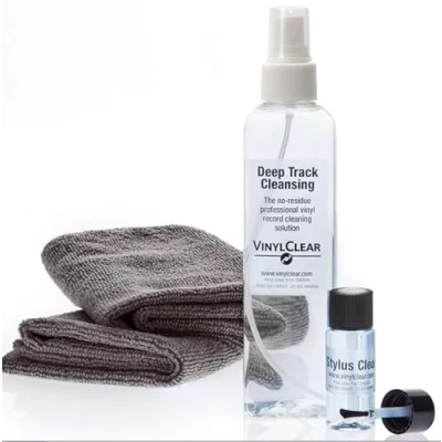 A LARGE 250ml BOTTLE with Micro-Atomiser Spray. This Vinylclear Professional Vinyl Record Cleaning Fluid contains ultra pure ingredients proven to penetrate deep into the record groove and gently soften and remove contaminates, dust, dirt, grease deposits and dissolves fingerprints from your records. Two FULL-SIZED (400x400mm) super soft optical quality microfibre cleaning cloths This large size 250ml bottle of vinyl record cleaning fluid will clean 350 LP's on both sides. Plus - BOTTLE OF STYLUS CLEAR. Needles often pick up dirt and dust which distorts their sound which is why we include a 10ml bottle of stylus cleaning fluid with its own stylus brush. The vinyl record cleaning solution you can trust. Certified by their award-winning mastering engineers, Vinyl Clear make record cleaning kits for Abbey Road Studios, are ENDORSED BY THE DAILY MAIL, THE DAILY MIRROR, THE GUARDIAN AND THE TELEGRAPH, partnered by Lenco Turntables and sold on QVC.