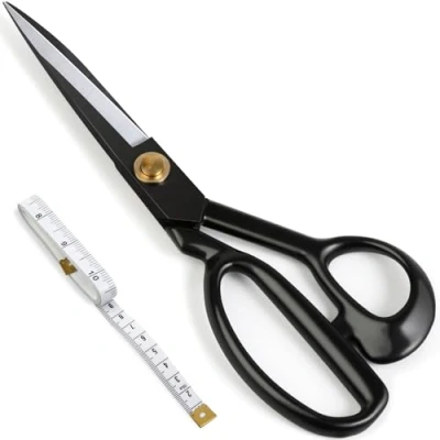 ULTRA SHARP FABRIC SHEARS: Made of high carbon steel which is stronger than stainless steel, the craft scissors have great qualities including good edge retention and ability to make clean cut through multiple layers of fabric.well worth investing to help you cut down on time and money and perfect your sewing creations. COMFORTABLE USE: This fabric scissors are rounded and ergonomic to fit easily into your hand without rubbing or pinching, and rubberized handles that allow for a comfortable grip and precise cutting. You don’t have to worry about hand fatigue when using these scissors for extended periods of time. PROFESSIONAL DESIGN: Bent handle helps hold materials flat for smooth, accurate, tabletop cuts. Chamfering process on tailor scissors blade head avoids scratching cloth accidently. ALL PURPOSE USE SCISSORS: This sewing scissors can be used for all kinds of cutting tasks. From fabrics and leather to plastic bags, packaging materials and thin and soft materials, these scissors are quite versatile. BONUS MEASURING TAPE: Flexible and portable measuring tape, made from soft plastic material, white color, suitable for measuring curved or flat surfaces, dual sided to show inches and centimeters, measuring range is 60 inches / 150cm. Free replacement for any quality issue.