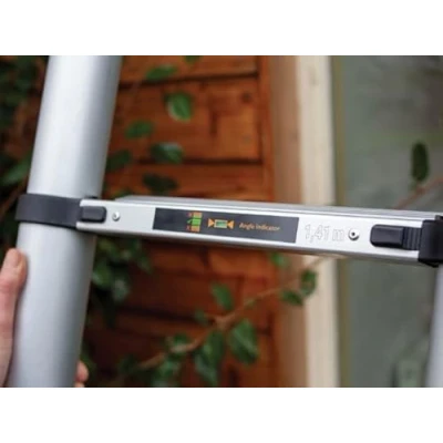 Light yet durable aluminium construction Extra-wide steps for increased safety and more comfort Fitted with a stabiliser bar and rubber wall mount caps Angle indicator to guarantee a safe angle of inclination Complies with the latest EU and US standards