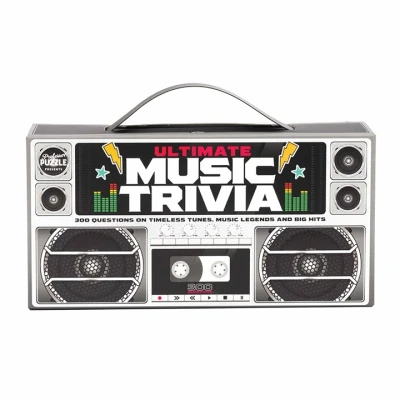 Ultimate music trivia; 300 music quiz questions for the music fanatic by Professor Puzzle Consider yourself a music know-it-all? Test & develop your music trivia knowledge with 300 questions across 3 categories: Timeless tunes, music legends & big hits Set contains 300 cards with 300 questions Part of Professor Trivia collection - A collection of fun, unique trivia quiz games/party games. With one point for each correct answer, compete to see whose trivia knowledge is best, Manufacturer: PROFESSOR PUZZLE