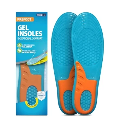 Profoot Gel Comfort Insoles for Men Shock Absorbing Shoe Inserts All Day Full Length Ideal Foot Discomfort 1 Pair per Pack