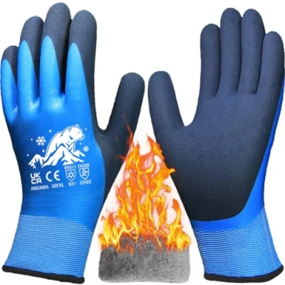 PROGANDA Waterproof Thermal Work Gloves Superior Grip Coating Polar Fleece Warm Liner Insualted for Outdoor Cold Weather Car Washing Gardening Fishing Multi Purpose