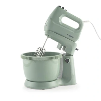 Our 2-in-1 Progress stand and hand mixer allows you to use the appliance as a lightweight hand mixer or a convenient hands-free stand mixer. With 5 speed settings and turbo function to provide complete control for everything from gentle mixing to thicker doughs. The powerful 300W motor delivers reliable performance for cake batters, whipped cream, cookie mixes and bread dough. It includes two stainless steel beaters, two dough hooks and a mixing bowl for everyday baking tasks. The stylish neutral green finish complements modern kitchens and coordinates beautifully with the Progress Neutrals range., Weight: 4.188782978 Pounds, Manufacturer: Progress
