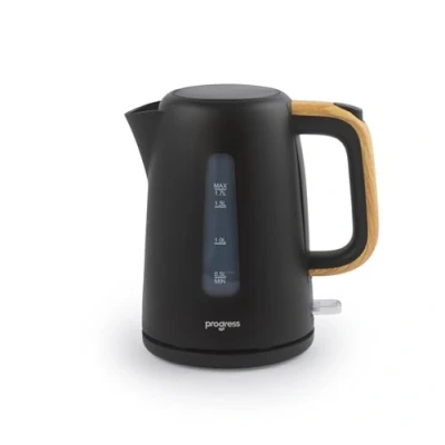 Progress Skara 1.7 L Kettle Rapid Boil, Removable Limescale Filter, Boil Dry Protection, Strix Controller, 360 Degree Base, BPA Free, Black & Wooden Accents, 3000W