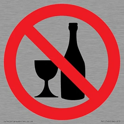 P907 : No alcohol This sign is made from stainless steel S10 square Sign Text: