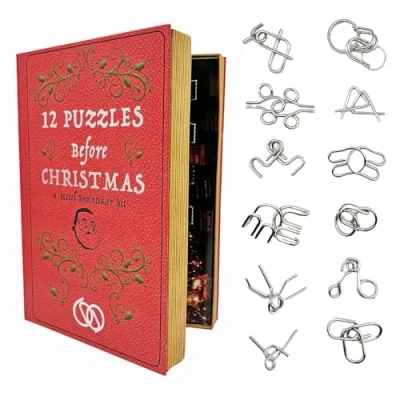 PUZZLE ADVENT CALENDAR: Kick off Christmas with this fun, brain teaser advent calendar for 12 days of fun HOLLY JOLLY PUZZLES: Behind each door is a is a metal entanglement puzzle CHRISTMAS BOOK: Packaged in a Christmas book-style packaging PUZZLE SKILLS: Great for encouraging concentration and aiding dexterity FOR ALL AGES: Perfect for adults and children over the age of 8 years old, Manufacturer: Project Genius