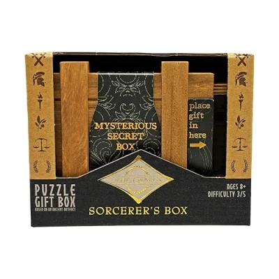The ancient world was filled with wooden boxes, but none as mysterious as the Pompeii Sorcerer’s Box. Now you can protect your valuables with your very own Sorcerer’s Box and discover it’s secrets for yourself. A great puzzling gift – Place a Note Inside for the Perfect Gift! Features a unique locking design and can be opened in just a few steps. BUT opening the box could take hours of fun! You can also use the box to store your treasures away from prying hands. Suitable for 8 years and over, Manufacturer: Project Genius