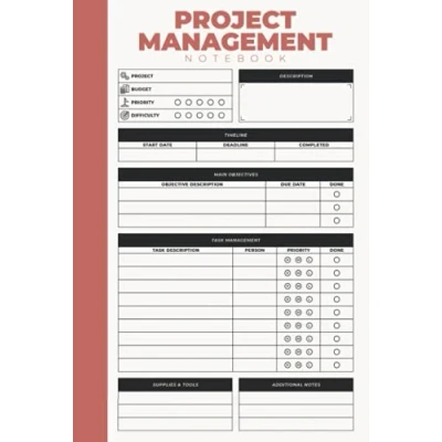 Project Management Notebook: Hardback & Hardcover Planner For Work Manager Tracker Organizer With Checklist Notes Notebook