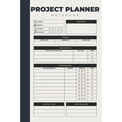 Project Planner Notebook: Business Management Organizer With Checklist & Notes For Manager Men And Women Hardcover Hardback Undated Workbook