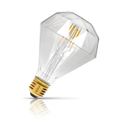 Decorative light bulbs help you create a retro style in your home.If you desire the look of days gone by, but want the technology to be firmly rooted in the present, the Prolite Funky Filaments clear Diamond bulb is the ultimate expression of retro high-tech.This extraordinarily shaped lamp lends a special aura to your living spaces. Too gorgeous to be hidden away, the diamond deserves to be the centre of attention. However opulent these lamps may look, they will not lead to a shocking electricity bill - a stunning combination of LED energy efficiency and luxurious design.These LED filament bulbs are the smart choice for your home with their energy saving potential, their elegant and unique vintage design and their warm light.The clear finish this decorative light bulb produces an extra warm colour temperature that really reinforces its vintage aesthetic.Hung from the ceiling in exposed clusters or used in singular, shaded fittings, these filament light bulbs manage to be both simple and sophisticated with the raw beauty of the LED filament elevated to the fore of their design.