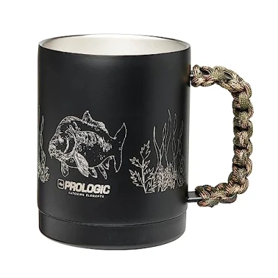 Prologic Blackfire Twin Skin Carp Cup - Stainless steel mug - Double-walled stainless steel - Blackfire finish - Laser etched details - Handle wrapped with camouflage cord - Retains heat longer - Great along the bank or at the campsite for example Crafted from high-quality stainless steel in a double-skin construction, this carpy mug keeps your tea or coffee hot longer than the average mug. It features the anti-reflective Blackfire finish that stops stain formation and is easy to clean. The mug is completed by a custom camouflage pattern-wrapped handle. Not only for a cool look, but also for a firm grip. Great for sipping a hot cup at the bank!
