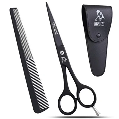 PromaxFit Hairdressing Scissors Barber for Hair Cutting Professional with Adjustable Screws Black Stainless Steel Scissor scizzors Comb
