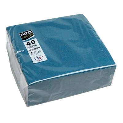 The Pronappe brand offers tableware products: tablecloths, napkins, plates, cups in bright and trendy colours to receive in the best way Our 2-ply napkins will bring you maximum comfort and give your table the elegance it deserves Ideal for restaurants and at home, for all occasions: birthdays, weddings, christenings, Christmas. The double stitch micro-embossing gives them thickness and hold conducive to your folding desires Their size 38 x 38 cm is ideal for use either at buffets, barbecues, appetizers as well as relaxed and chic sit-down meals. These FSC certified towels are responsibly sourced from embarrassed sources Products made in France and certified in accordance with food contact. Suitable ink will not fade or fade in light. Sold in box of 40 napkins - Pacific Blue