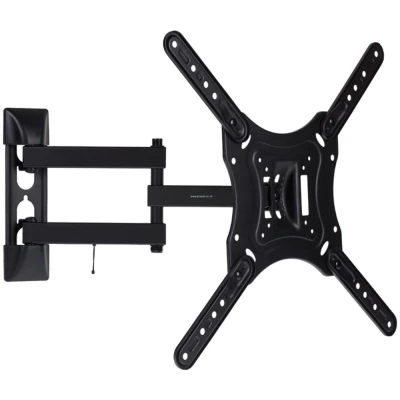 Good to know- This ProperAV TV bracket has 2 heavy duty extendable arms - perfect for mounting your big screen in tight spaces- It is suitable for screens between 23” - 55” with a maximum weight of 30 kg- It can tilt and swivel 90° from left to right so you can angle it just the way you like it- You won't have to worry about messy cables ruining your view thanks to the built-in cable management