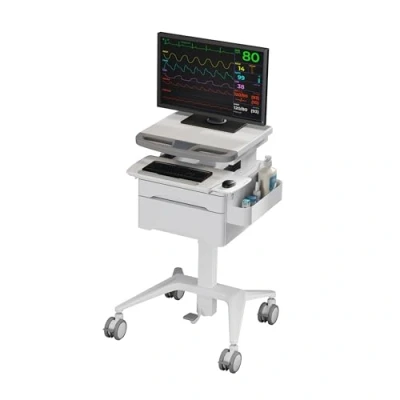 ProperAV Mobile Workstation Trolley Cart, Height Adjust with Foot Pedal, 2 Storage Drawers, Locking Casters, Keyboard & Mouse Tray for Hospitals, Warehouses, Schools, Airports, Train Stations more