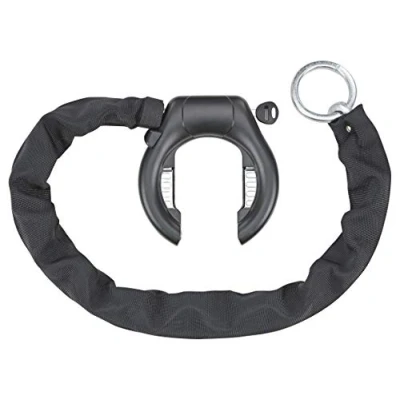 Type * certified With additional connection chain (diameter 6 mm) to secure the bike to a fixed object With a diameter of 9 mm steel ring shackle Includes 2 keys, 1 of which is illuminated Key cannot be removed when open With child safety lock. Colour: black
