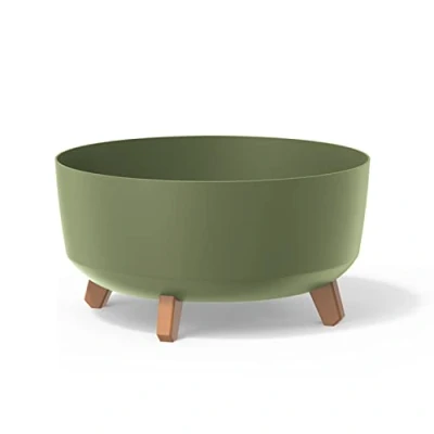 Prosperplast Gracia Low Flower Pot with Removable Legs Incl. Insert for Indoor and Outdoor Use Planter Round Plastic UV-resistant (380mm, Green)
