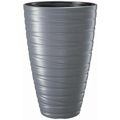 Prosperplast Maze DPMZ400 2-in-1 Flower Pot Planter with Plant Pot Round Plastic 37.5 cm Diameter 57.9 cm Height (Grey)