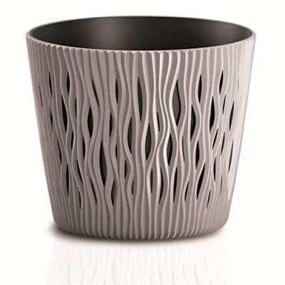 Prosperplast Sandy Round Plant Pot 2in1 with Plastic Planter Form, Indoor Outdoor Usage, Size Small