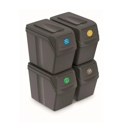 PROSPERPLAST Set of 4 Cubes 80 L Prosper Sortibox Plastic Grey Recycling Containers, Multicoloured, One Size