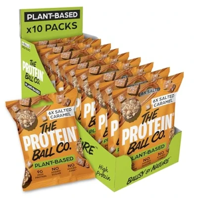 Protein Balls Salted Caramel Flavour by The Ball Co 100% Natural Plant Based Vitamin Enriched Snacks 10 x 45g Bags High Fibre, No Added Sugar, Gluten Free, Artificial Sweeteners