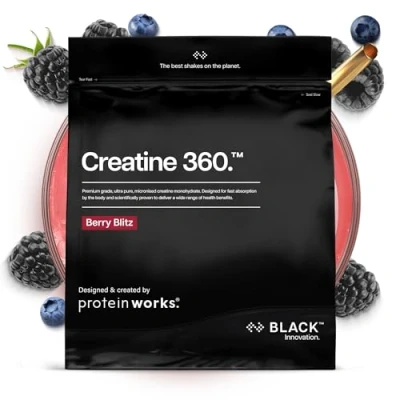 Protein Works Creatine Monohydrate, Micronised Powder, 100% Purity, 200 Mesh Ultra Fine Creatine, Improves Performance, Strength & Power, Berry Blitz, 62 Servings, 250g