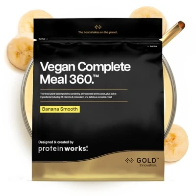 NUTRITIONALLY COMPLETE MEAL: Vegan Complete Meal 360 - GOLD (previously known as Vegan Complete 360 Meal) is a convenient and nutritious option if you're looking for a balanced meal replacement that provides essential nutrients in one serving. High in protein and low in sugar to facilitate your daily intake levels and is high in fibre, leaving you fuller for longer. PREMIUM SOURCED INGREDIENTS: Award-winning meal replacement containing specially sourced plant-based ingredients including premium oats, our innovative tri-protein blend, flax seed and MCTs derived from coconuts. FULLER FOR LONGER: Vegan Complete Meal 360 - GOLD is high in fibre, low in sugar and 400 calories per meal. Each shake will leave you feeling fuller for longer. ESSENTIAL VITAMINS & MINERALS: Enriched with probiotics as well as essential vitamins & minerals to help support your gut health and immune system. Naturally packed with our innovative blend of the most intelligent micronutrients your body needs to flourish, including Vitamin A, B12, B6, C, D, E, Zinc, Selenium, Magnesium, Iron, Folic Acid, Calcium and Thiamine. FULL ON FLAVOUR: Take your pick from a number of delicious, indulgent flavours and super smooth texture. Simply add water for a quick and convenient option, or for added richness, blend with a splash of milk and enhance with your favourite fruits. (Packaging and name may vary)