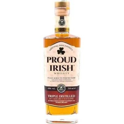 Authentic Irish heritage blend Triple-distilled in Ireland, Proud Irish Blended Whiskey combines 85% grain and 15% malt whisky—aged over three years in ex-Bourbon American oak barrels for a smooth, time-honored flavor. Inviting aroma with honey and wildflower notes The nose welcomes you with chestnut honey and gentle wildflower scents, evoking warm, pastoral Irish landscapes. Smooth palate with caramel, pear & cherry nuances On the palate, sweet caramel and toffee evolve into fresh pear and cherry notes, finishing softly with sweet cereal and a whisper of cloves. Versatile for sipping or classic cocktails This whiskey adds Irish character to cocktails like an Old Fashioned or shines neat with a twist—welcoming both contemplative enjoyment and social sharing. Ready to serve in a 700 ml bottle at 40% ABV A generous 700 ml size and balanced 40% ABV make it perfect for friendly gatherings or refined gifting.