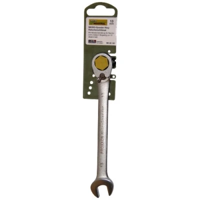 Spanner width: 13 mm, finely toothed with 72 teeth, length: 175 mm Right/left switching on the ring side Chrome-plated, matte, lasered lettering Unwinding on the ring side by 15°, Weight: 0.1322773572 pounds, Manufacturer: PROXXONGmbH