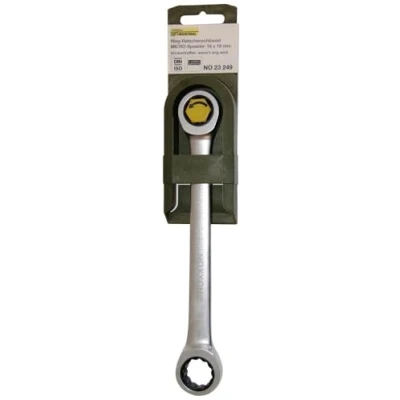 Proxxon 23249 double ring micro speeder 16 x 18 mm with ratchet function in straight, slim shape - for time-saving work without transferring Ratchet function with 72-tooth inner ring made of high-alloy special steel The drive takes place even with a lever movement of 5° – the change of the direction of rotation is achieved by turning the key – no disturbing switching lever Shaft made of CrV steel with optimal surface protection: 2 x nickel-plated and 1 x matt chrome-plated With laser lettering and clearly readable key widths, Weight: 0.5291094288 Pounds, Manufacturer: Proxxon