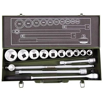 Item Trademark: Proxxon Sockets with sizes 22 to 50-Millimeter Item Trademark: Proxxon Set includes closed head reversible ratchet for keeping dirt and debris out of ratchet teeth Exceeds all DIN/ISO international specifications, Weight: 27.55778275 pounds, Manufacturer: Proxxon