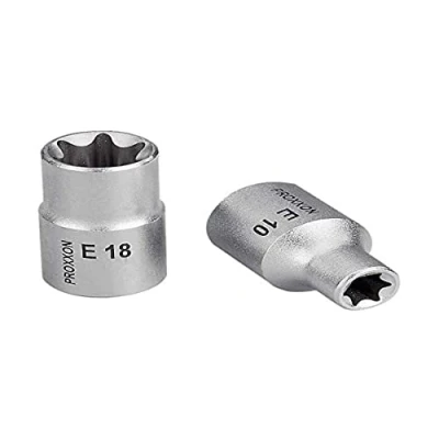The socket spanner insert is suitable for powerful use The tool is made of chrome vanadium steel 31 CrV 4 and is therefore very robust and durable Technical details: 1/2 inch, size E 24 Box contents include an external TX insert, Weight: 0.2425084882 Pounds, Manufacturer: Proxxon